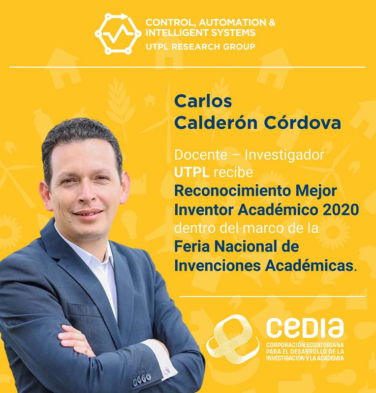Carlos Calderon Cordova: Premio Mejor Inventor Académico 2020, otorgado por CEDIA