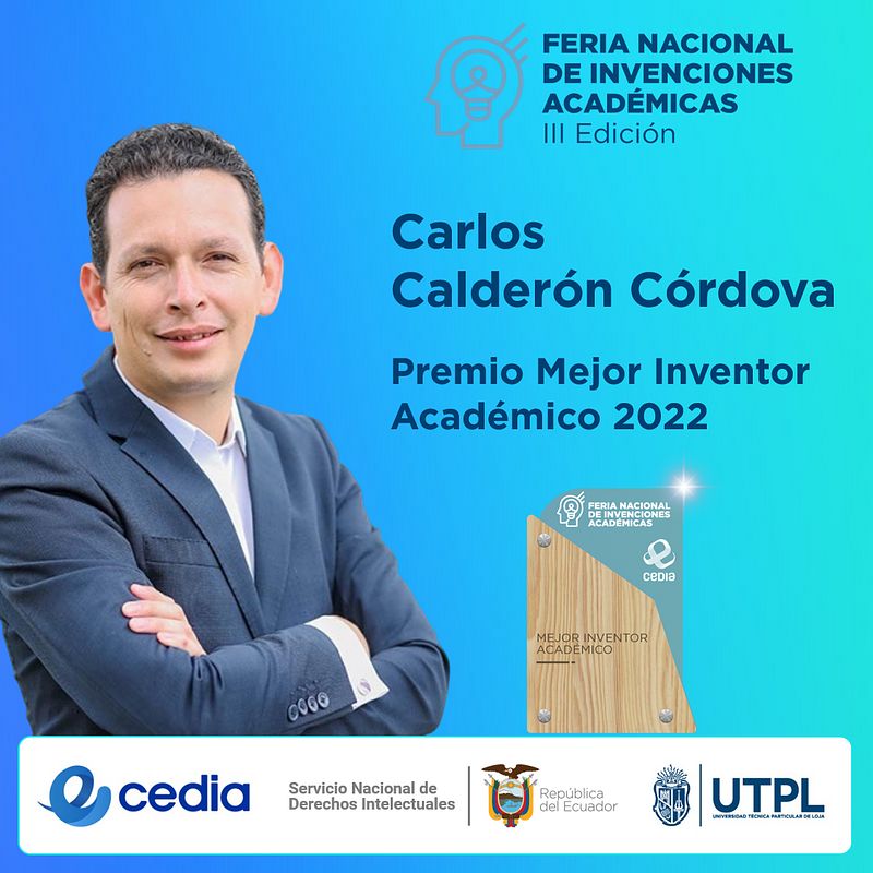 Carlos Calderon Cordova: Premio Mejor Inventor Académico 2022, otorgado por CEDIA