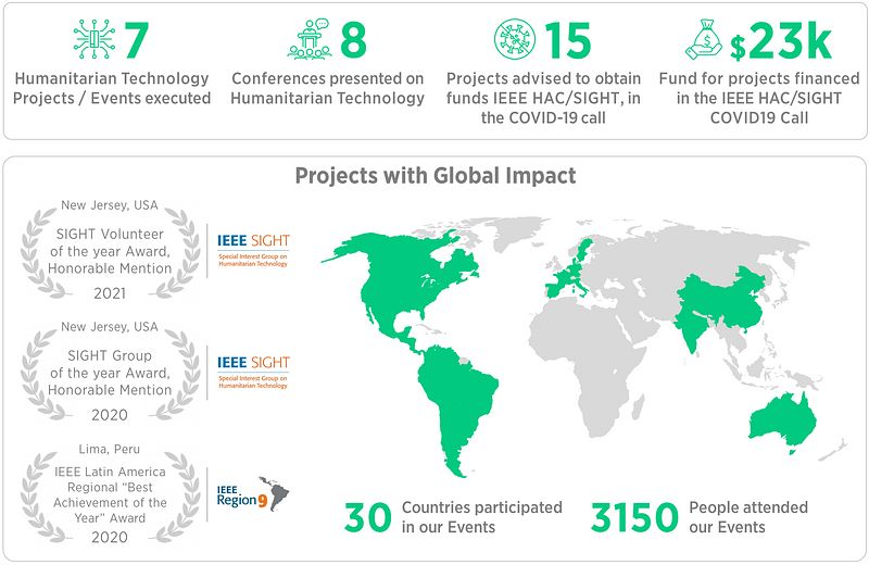 - 7 Humanitarian Technology Projects/Events executed.