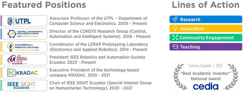 Carlos Calderon Cordova: Featured positions in Research, Technology Transfer, Community engagement, and Teaching
