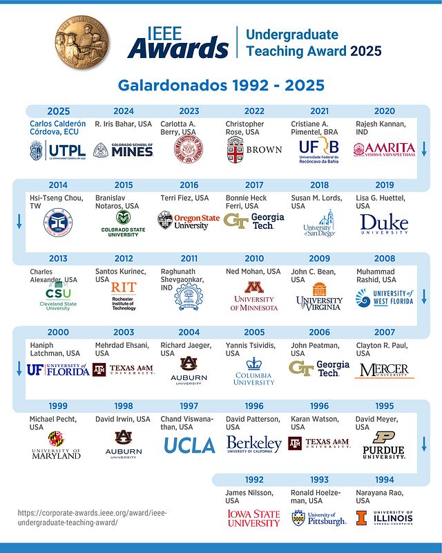Carlos Calderon Cordova: IEEE Undergraduate Teaching Award, Institutional affiliation of the awardees, 1992 - 2025